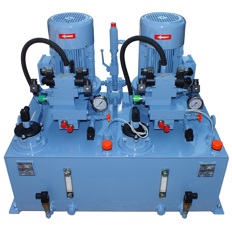 The electrohydraulic power pack type CC-100V-2U is supplied with one or two electric motors 220/380V or 24V, vertical 100 litre tank, solenoid valve, non-return valve, central manifold with adjustable max pressure valve, gear pump, filter, pressure gauge with exclusion and all that is needed for a correct functioning.