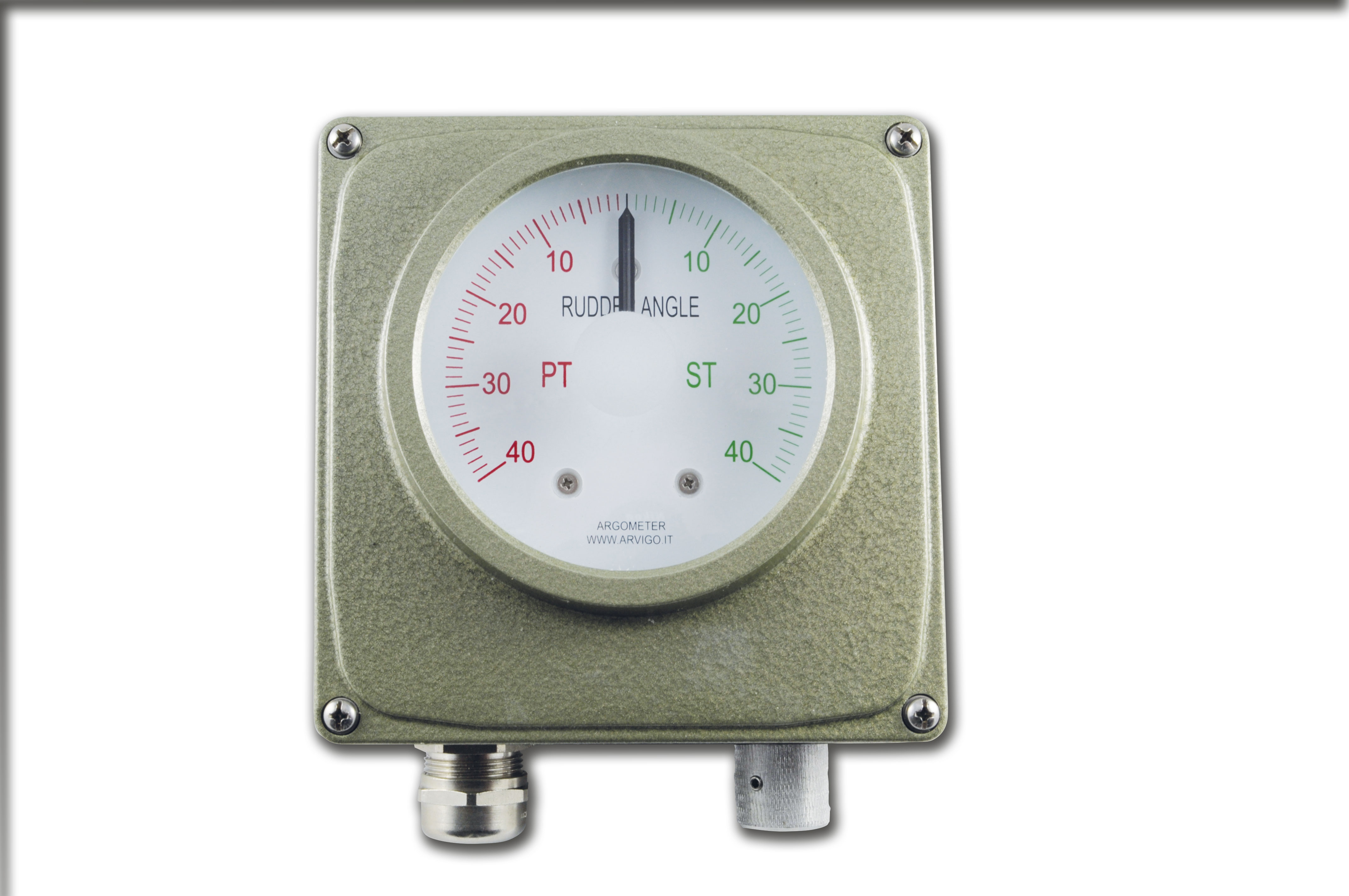 Rudder angle indicator with MED certification and TYPE APPROVAL (Rina), available both with scale facing upwards or downwards. Datasheet Graduated scale +/-40°- +/-50° Dimensions 154×154 Level of protection IP56 Backlight 24V